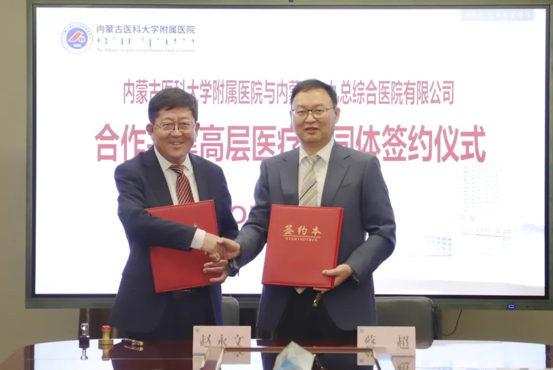 仪式上,内蒙古一九总综合医院有限公司董事长赵永文与内蒙古医科大学附属医院党委副书记、院长蔡超共同签署了《内蒙古医科大学附属医院与内蒙古一九总综合医院有限公司高层医疗协同体合作共建协议》。